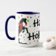Två hästsilhuetter med röda bågar på en polka punkt och vit bakgrund med ord "Glad helg". Anpassa med din personliga Julhälsningar. Perfektens gåva till din hästälskare!