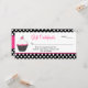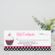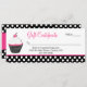Söt bageripresentkort i form av vita och rosa med svartvit prickaccent. Vitaktig grafik av en rosa, vit och svart cupkaka dekorerar den lämnat sidan av kortet. Text är redo för att anpassa ditt företags behov till kostym. Matchande affärskort är tillgängliga.