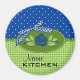 Polka Dot Ro-kylskåp, magnet, Blue-är en grafisk konsdesign. Den övre delen av bakgrunden är blått och vitt polka dots. Grund-halvan är grönt och vitt polka dots. Ett tunt grönt rikrabb delar de två mönster. I mitten finns en ovalform för grönt som håller ett blått ro med grönt löv. En bockad blå och vit båge förskönar ovalen. Jag har placerat två textområden på magneten där du kan anpassa dig. Byt ut ord NAMN mot en persons namn. Den andra ord säger Kitchen. Båda textområdena kan du redigera eller radera om du vill. Den här utformningen av polka punkt ro finns i flera olika färger.