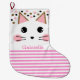 Polka Dot Rosa Guld Glitter strimlad katt Ansikte Stor Julstrumpa