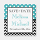 Snyggt anpassningsbar Sparar datum magneter för att du aviserat bröllop, designat med vitt polka dots över turkos överst och ett svart och vitt zigzag mönster vid grund.