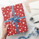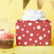 Omslagning papper visas i ett sött, rött och vitt polka dots-format. Anpassa det här objektet eller köp som det är.