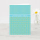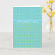 Ett födelsedagskort i chic med en blandning av mönster i Polka dots och ett Daffodil Mönster i Blek Gult på en turkobakgrund.