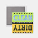 Clean är i himlar blå med ljusblå polka dots på kalkbakgrunden. Dirty är svart med ljus guld mot guld bakgrund. Detta är en digital illustration.
