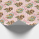 Gåva för vintagejulanpassade som slår in papper, av red_dress som presenterar ett enkelt seamless mönster av antika julflickaillustrationer och ord, i röd text, ", säsong hälsningar", på rosa- och vitpolka dotsmönster.