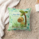 Baby välkomstkudde har ett djungeltema med polka dots i pastellernas grönt och blått. Söta baby giraffe och Coconut Handflatan för ett sött, contemporary daghem. Anpassa till baby namn och födelsedatum..
