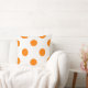 Kvadratisk bomull dekorativ kudde visar en orange och vit polka dots mönster. "Anpassa den!" gör att du kan anpassa bakgrunden till orangen färg med valfritt färg från diagrammet på högerna. Mönster-designen är tillgänglig för alla Zazzle-produkter. Om den inte är tillgänglig ännu eller om du har en fråga om hur du anpassar en produkt för utskrift på begäran, använda kontaktknappen nedan.