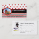 Roliga lärare visitkort som göras i svart som är röd och vit, med polka dots och randar. Diagram av en skolbuss som fylls med nyckelpigor bredvid ett lite rött, skolar huset, dekorerar vänster sida av kortet. Baksidaen har en vitbakgrund och text för lärare-/förälderkonferenser och dekorerat, med ett gulligt nyckelpigainnehav en notera. Personifiera alla text beklär och drar tillbaka för att passa dina behov. Underbaren för lärare och handleder.
