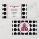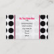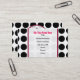 En visitkort som presenterar en svart polka, pricker bakgrund över vit med rosaklippning. Rosa och svart text över ren vit. Personifiera med din information. Motsatssidosärdrag som matchar polka, pricker bakgrund. Logotypen av den rosa Schoolhouseinsidan cirklar den formade rosaramen.