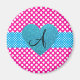 Polka dots rosa och vit bakgrund med fingblått glitter hjärta och blåvitt polka dots rand och monogram brev ändras till brev a,b,c,d,e,f,g,h,i,j,k,l,m,o,p,q,r,s,t,u,v,w,x,y,z