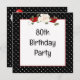 Svartvit polka ram med en blommigt bouquet och ett rött band för 80 födelsedagsfest inbjudan. All text kan ändras.