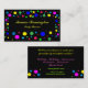 Den gladlynt polkaen pricker cirklar i en tumult av färger, inklusive gult, grönt, turkos, blått som är röd, orange, och rosor, är temat av denna glatt festliga partyplannervisitkort. All text kan skräddarsy för din speciella affär.