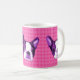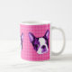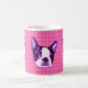 Extraförmåner upp din morgon med ett purpurfärgat huvud för Boston Terriervalp på en rosa polka pricker bakgrund!