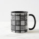 Kaffe/drinkmuggen med stilfull polka pricker patchworkmönster i grått som är svartvita.