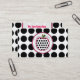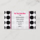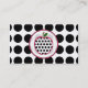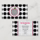 En visitkort som presenterar en svart polka, pricker bakgrund över vit med rosaklippning. Rosa och svart text över ren vit. Personifiera med din information. Motsatssidosärdrag som matchar polka, pricker bakgrund. Matcha polka pricka äppleinsida cirklar den formade rosaramen.
