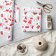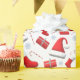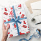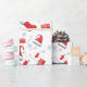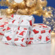 Polkagrisar, julklappar och jultomtar har en bilder av röda och vita julklappar, polkagrisar, tomter och snöflingor som är spridda mot en vit bakgrund. Roligt och festlighet.