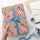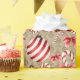 Land inslagning papper i underbara rödvita stripade polkagrisar och bollar