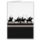 Svart och vit silhuetteillustration av polospelare på hästar, sväljande gräsänder