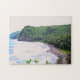 Sätt upp dina skapar färdigheter på testet medan du behållor drömmarna om tropiska resor levande med det här skottet från översikten ner till Pololu Beach på Stora ön Hawaii. 11 x 14 tums pussel med 252 delar.