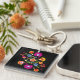 Unik folklore-sammansättning med rosa och gula blommor inspirerad av folkkonsten Wycinanki från Lowicz kvadratnyckelkedja. Cute som gåva till folk som älskar människor.