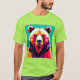 Abstrakt geometrisk konst som visar en björns huvud sammansatt av livfulla polygoner på en ljusgul bakgrund, perfekt för design och kreativa projekt.