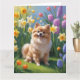 Pomeranian Hund Vårblommor Målning Kort