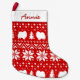 Pommie älskare julstrumpa. Mönster för jultröjastil med vitPomeranian silhouettes. Personifiera denna gulliga helgdag som lagerför med ditt namn eller din hund namn. Ett perfekt tillägg till hängningen på ditt spisansvar. Alla önskar att vara inklusive i de säsongsbetonade festivitiesna, och våra fluffiga vänner är inget undantag. Fest din mesiga familjemedlem med beställnings- lagerföra för julafton. Denna Pomeranians julstrumpa är underbar för både Poms och Pommyälskare. BesökJenns värld för klotter för även mer hund avelnstrumpor och djurälskare helgdagdekorationer.