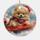 Pommern Hund i Sledge Låt det snöa jul Julgransprydnad Keramik