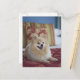 Pommern-hund på ett vänligt hotellrum för sällskap vykort