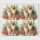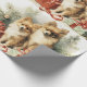 Cute Pommern hundar sitter framför Julgran med inslagna helgdag, rödband och bågar av söt. #generativeccontent