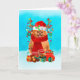 Pomeranian i snö med julklappar kort