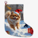 Pommern springer i Snö med julklapp Stor Julstrumpa