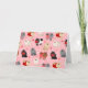 Cute Valentine Day Pomeranians med grädde, svart, choklad, grått och tan jackar att bära rött, rosa och vita prickprickar och hjärtsvettare med utspridd tass avtryck och pil mot rosa.