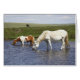 Vildponnyserie: Två Dartmoor ponnyer, nästan upp till deras hocks, dricker i ett bevattna hål som ganska är fullt från nytt, regnar. En är piebalden, och en är vit. En brun ponny är betande på det grova moorlandgräset i det near avståndet.