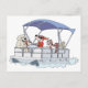 Roscoe klappar med sina knoppar vid sjö på sin pontoonbåt.