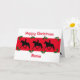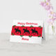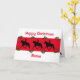 Illustration av en liten flicka som trotsar på en ponny. Tre söta, svarta silhuetter trot över sidan på en grönt och vit bakgrund omgiven av holly. Förbluffande design. Du kan enkelt anpassa det här söta julkortet genom att redigera malltexten. Tack för att du tittar på min hästdesign.