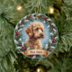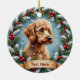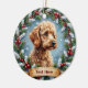 A beautiful, ultra-detailed Christmas ornament design featuring a realistic portrait of the breed centered within a soft, festive winter frame. This elegant design includes pine branches, red berries, and snowflakes against a snowy backdrop, illuminated by warm holiday lighting. The balanced, round composition includes clear space below the dog for customization.