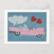 Poodles i rosa cabriolet vykort