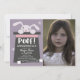 Perfekt magisk tema födelsedagsfest inbjudan för dina barn! Illustration av en söt kanin som tittar ut från en magikers svarta topp hatt. Texten inuti hatten säger "poof!" och festinformationen följer. Du kan också lägga till ett foto av ditt barn. Bra för flickors födelsedagsfest med dammig rosa och lila färger.