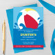 Fira barnets speciella dag med vår livfulla barnkalasinbjudan, med en lekfull strandboll som stänker ner i en skimrande vattenbassäng. Ljus och glad, denna design fångar sommarens kul och spänning och inbjuder vänner och familj att vara med och fira. Perfekt för en poolparty eller strandtema-arrangemang, den kommer säkert att göra barnets födelsedag oförglömlig med sina livliga färger och glada bilder.