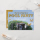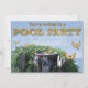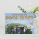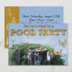 Den fantasifulla poolparty-inbjudan visar fjärilsflickor som använder en fågelbad för att ha sin egen "pool"-fest. På baksidan gränsar bleknande våta fotspår på sidan av poolen till inbjudningsinformationen som skrivs över "vattnet" i poolen. Kan användas för alla poolfester - födelsedag, årsdag eller bara för att umgås en dag av kul. Konst och fotografering av Marilyn Straus.