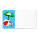 En tom stor etikett med rolig strand eller simbassäng tema konst med en röd strandboll, grönt solparasoll, semester sandaler och sololja på en vattnig blå bakgrund med lockiga vågor. Klicka på Anpassa för att ändra teckensnitt, element, etikettstorlek med mera, spara till och med din design för senare.
