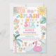 Gör en storslagen inbjudan med denna färgglada poolparty-inbjudan, perfekt för att fira ditt barns speciella dag. Med livfulla sommarillustrationer som glassar, flamingo-flottar, palmer och vattenmeloner sätter denna lekfulla design tonen för en rolig fest. Perfekt för barnkalas, simbassängfester eller tropiskt-temade evenemang, gör denna anpassningsbara inbjudan planeringen enkel och minnesvärd. Anpassa med dina festdetaljer för att skapa en unik souvenir som gästerna kommer att älska.