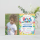 Poolparty-inbjudan med anpassad bild. Sommaren splish splash. Pojkarnas födelsedagsfest-inbjudan. Strandboll. Simning. Baddräkt. Födelsedagsfirande. Färgglada regnbågs-chevron. Vit bakgrund. 1:a Första födelsedagen. Alla åldrar. Digitalt utskrivbart. För ytterligare anpassning, klicka på "Anpassa"-knappen och använd vårt designverktyg för att ändra denna mall.