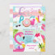 Poolparty med enhörning, sjöjungfru och flamingo f inbjudningar