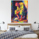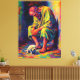 Touching and colorful oil painting of a homeless elderly man in a tattered yellow robe, sitting happily with his loyal small white dog at his feet. Vibrant rainbow brushstrokes and warm palette convey joy, companionship, and contentment in simplicity. Perfect inspirational wall art for home, office, or animal lovers seeking emotional, uplifting decor. High-quality print captures the vivid colors and heartfelt moment.