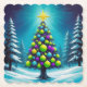 This festive vibrant design features a pop-art synth wave Christmas tree with neon colors ornaments.