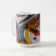 Bold curves, dotted textures, and vibrant color blocks in red, yellow, blue, black, and white create a dynamic, comic‑inspired aesthetic that transforms a simple mug into a statement piece.