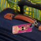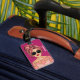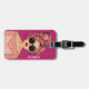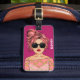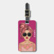 Stylish and modern bag tag features an illustration design of a comic book style girl wearing sunglasses on vacation. Personalize with your name. The reverse features a modern green background with space to personalize with name and contact information.