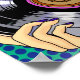 Pop Art-flicka som håller ett vinylalbum med musik noter runt henne. Blått, grönt och lila färglöst hand plockade-konst.